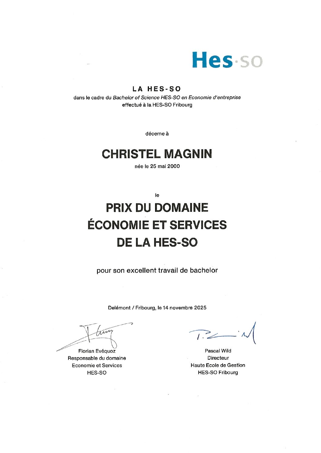 - Prix du domaine économie et services de la HES-SO