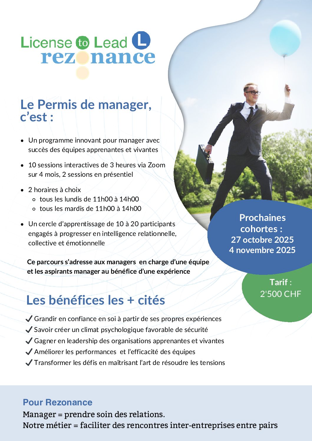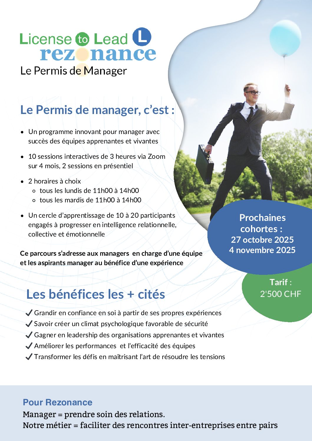 Si vous souhaitez transformer votre leadership en atout stratégique, ce Permis est fait pour vous. Il a été développé avec Groupe Mutuel et Retraites Populaires et les membres Rezonance.
